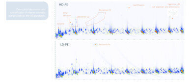 热解耦合综合二维气相色谱分析-质谱法(py-GC×gc - ms)是一个非常强大的技术描述复杂的矩阵。在应用程序中注意Pyrolysis-GCxGC-MS方法应用于两个聚乙烯标准较低(LD-PE)和(HD-PE)密度高以及现实生活中的聚乙烯包装材料。
